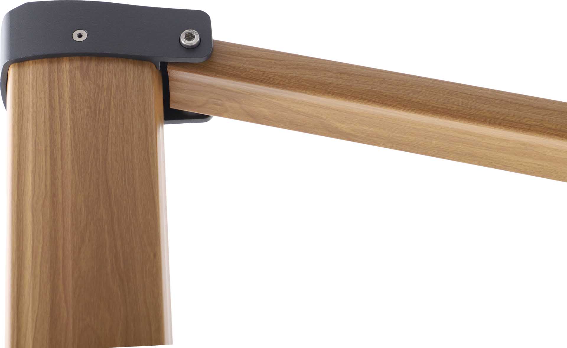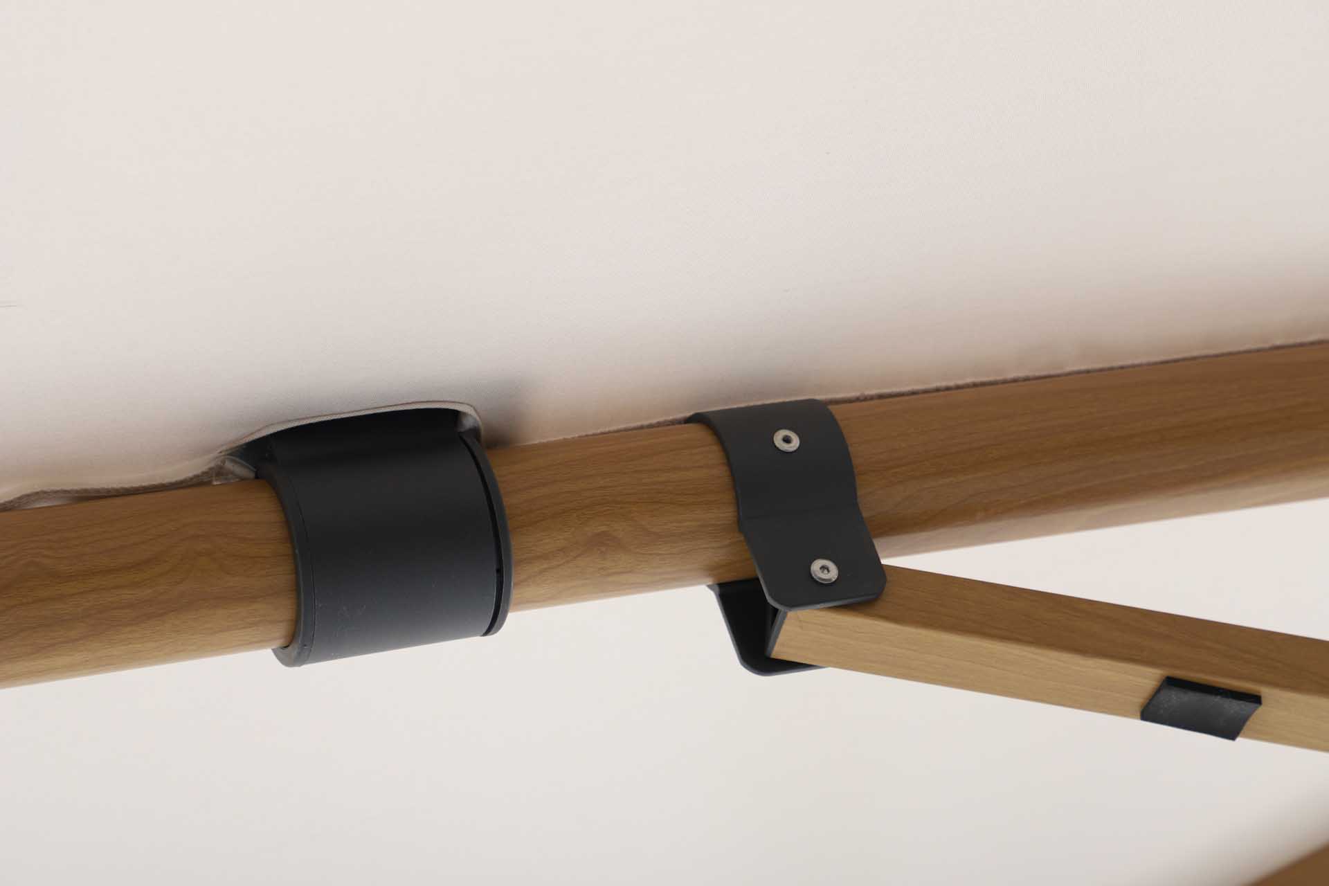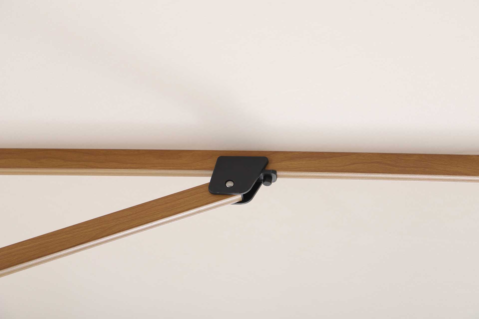 Das Gestell besteht aus pulverbeschichtetem Aluminium – robust, korrosionsbeständig und langlebig. Der Schirm öffnet sich leichtgängig über eine Kurbelmechanik, die komfortables Aufspannen und Schließen ermöglicht.