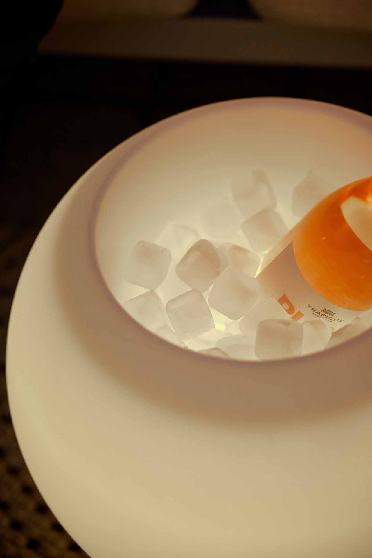 Produktname: SPHERE LED Leuchte mit Bluetooth-Lautsprecher und Getränkekühler, brass