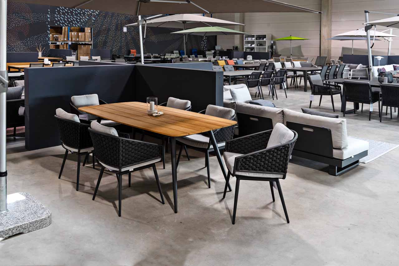 Wenn Sie bei uns vorbeischauen, erwartet Sie eine liebevoll gestaltete Ausstellung voller inspirierender Ideen. Entdecken Sie eine Vielzahl an hochwertigen Gartenmöbeln, die sowohl Funktionalität als auch Ästhetik vereinen. Von eleganten Loungemöbeln über komfortable Esstische bis hin zu gemütlichen Sonnenliegen – bei uns finden Sie die perfekte Ausstattung für jeden Geschmack und jede Outdoor-Situation.