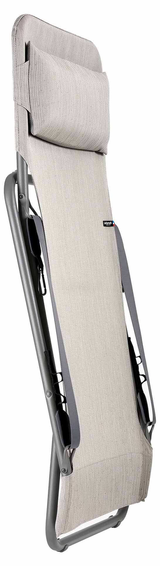 Der Bezug des Liegestuhls ist abnehmbar und das Kopfteil kann individuell angepasst oder entfernt werden, um maximalen Komfort zu gewährleisten.