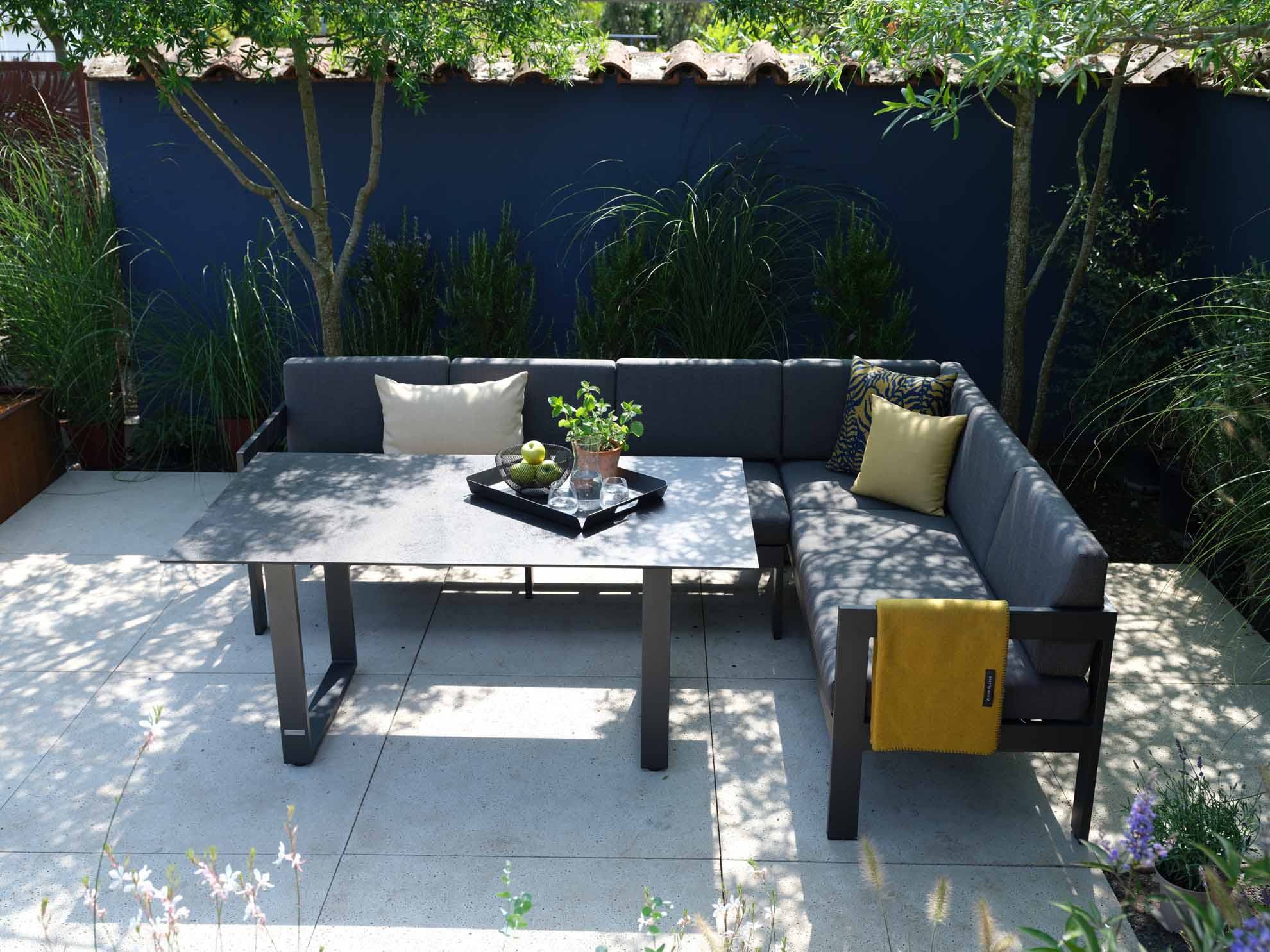 Gartenmöbel aus Aluminium sind geradezu ideal für den Einsatz im Freien geeignet. Das geringe Gewicht, die Wetterbeständigkeit, sowie die außerordentliche Langlebigkeit machen Aluminium zur 1. Wahl bei Gartenmöbeln aus Metall. Damit das Material nicht „ausblüht“ sind unsere Aluminium-Gartenmöbel mit hochwertigen Pulverbeschichtungen versehen. Viele Artikel sind in verschiedenen Farben erhältlich. Fast alle Aluminium-Gartenmöbel aus unserem Sortiment werden in aufwendiger Handarbeit gefertigt. Die Schweißnähte werden geschliffen und poliert, sodass Verbindungen anmuten als wären sie „aus einem Guss“.