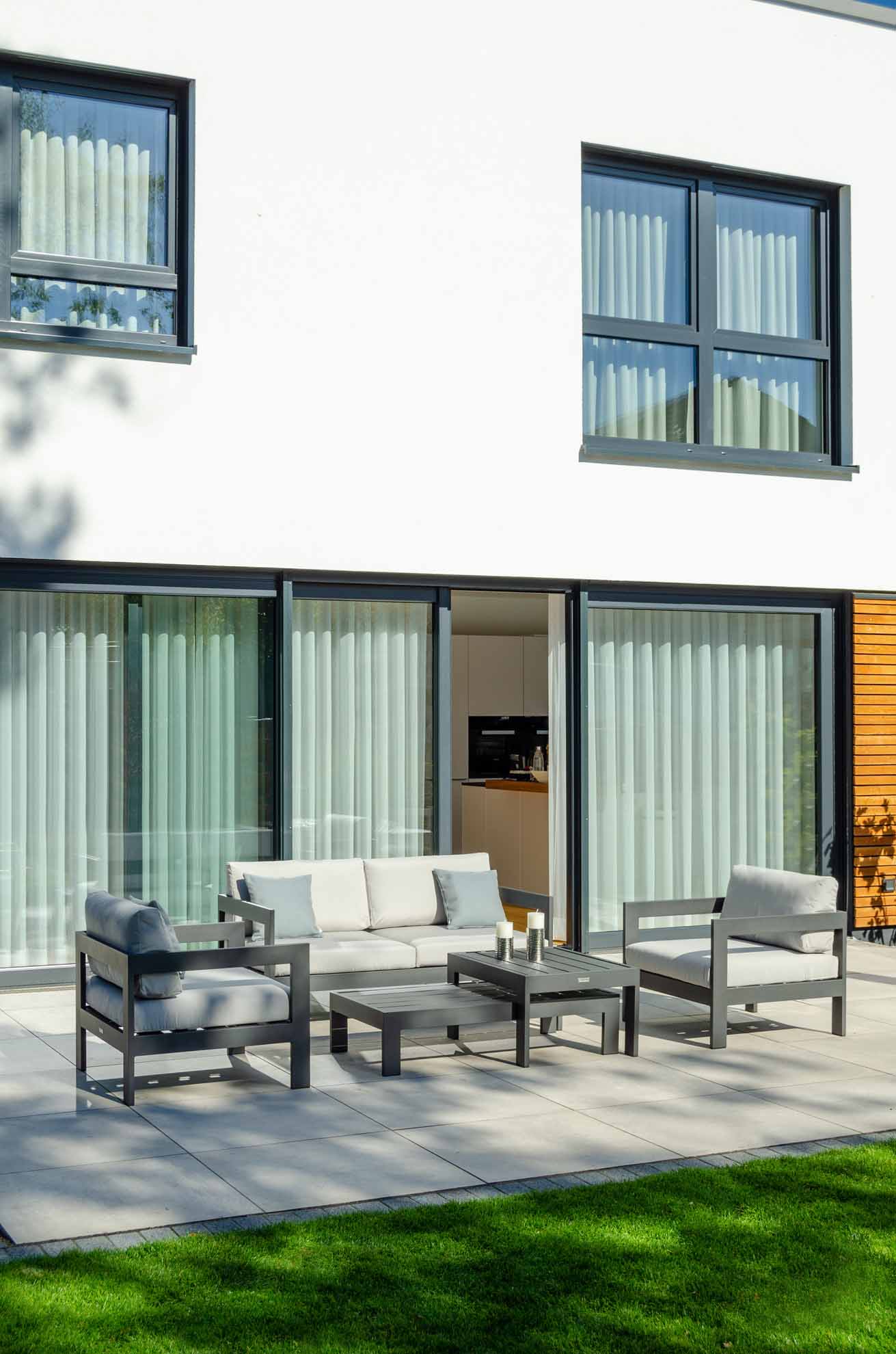 Gartenmöbel aus Aluminium sind geradezu ideal für den Einsatz im Freien geeignet. Das geringe Gewicht, die Wetterbeständigkeit, sowie die außerordentliche Langlebigkeit machen Aluminium zur 1. Wahl bei Gartenmöbeln aus Metall. Damit das Material nicht „ausblüht“ sind unsere Aluminium-Gartenmöbel mit hochwertigen Pulverbeschichtungen versehen. Viele Artikel sind in verschiedenen Farben erhältlich. Fast alle Aluminium-Gartenmöbel aus unserem Sortiment werden in aufwendiger Handarbeit gefertigt. Die Schweißnähte werden geschliffen und poliert, sodass Verbindungen anmuten als wären sie „aus einem Guss“.